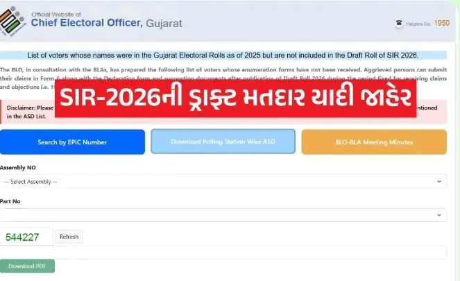 2026 ની નવી મતદાર યાદી (Draft Roll ) pdf માં ડાઉનલોડ કરવા અહીં ક્લિક કરો.